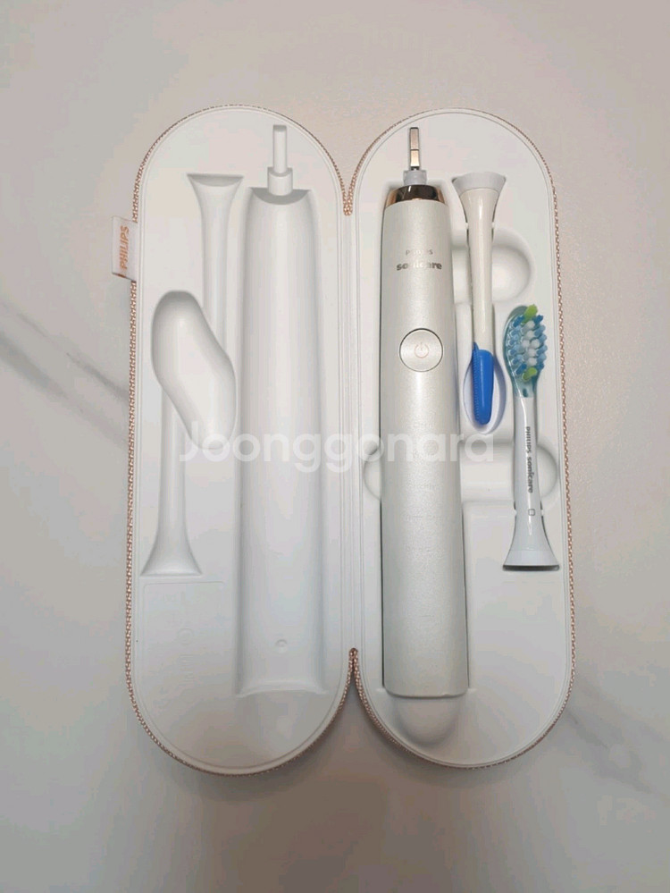 필립스 소니케어(PHILIPS sonicare) 전동 칫솔입니다. 구성품은 박스 제외하고 모두 보관 중입니다. 참고로 칫솔모와 혀클리너는 모두 새것입니다. 아시는 분들은 아시겠지만 전동 칫솔로 매우 유명한 브랜드이기에 성능은 매우 좋구요. 보관용 케이스 충전하셔서 넣어놓으면 알아서 충전되고 사진에 첨부해놓은 유리컵에도 꽂아놓으면 알아서 무선으로 충전되기에 귀찮으신 분들에겐 최고입니다. 더 궁금하신 분들은 아래 링크 통해서 추가 설명 보시면 될 듯 합니다. (https://smartstore.naver.com/smile-jp-store/products/12840626983) 원하시면 추가적으로 사진 드리겠습니다. 막힌 사람 아니니 편하게 연락주세요. ^^