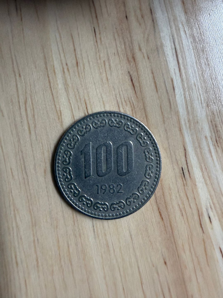 1982년 발행된 100원 동전입니다. 사용감은 있지만 상태 양호하고 컬렉션용으로 좋을 것 같아요. 빈티지 동전 찾으시는 분께 추천드려요!
