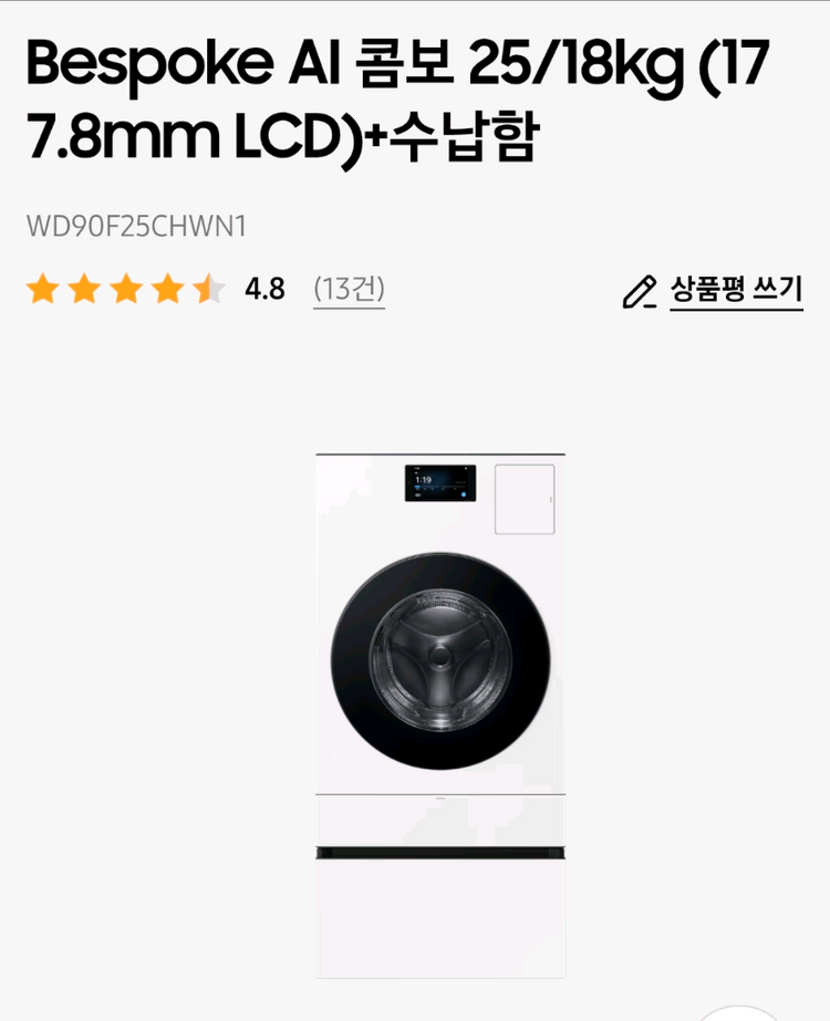 Bespoke AI 콤보 25/18kg (177.8mm LCD)+수납함WD90F25CHWN1