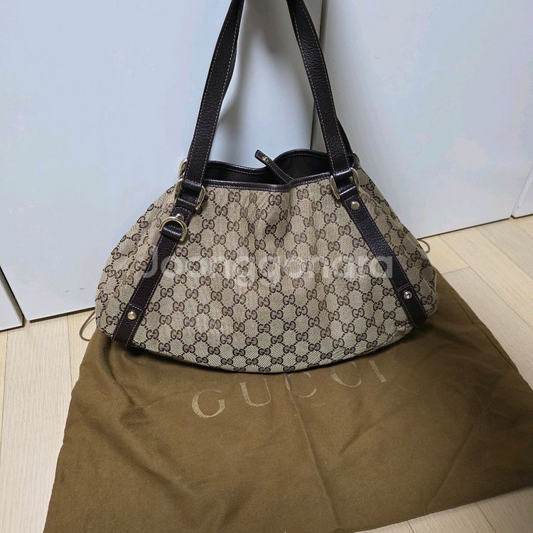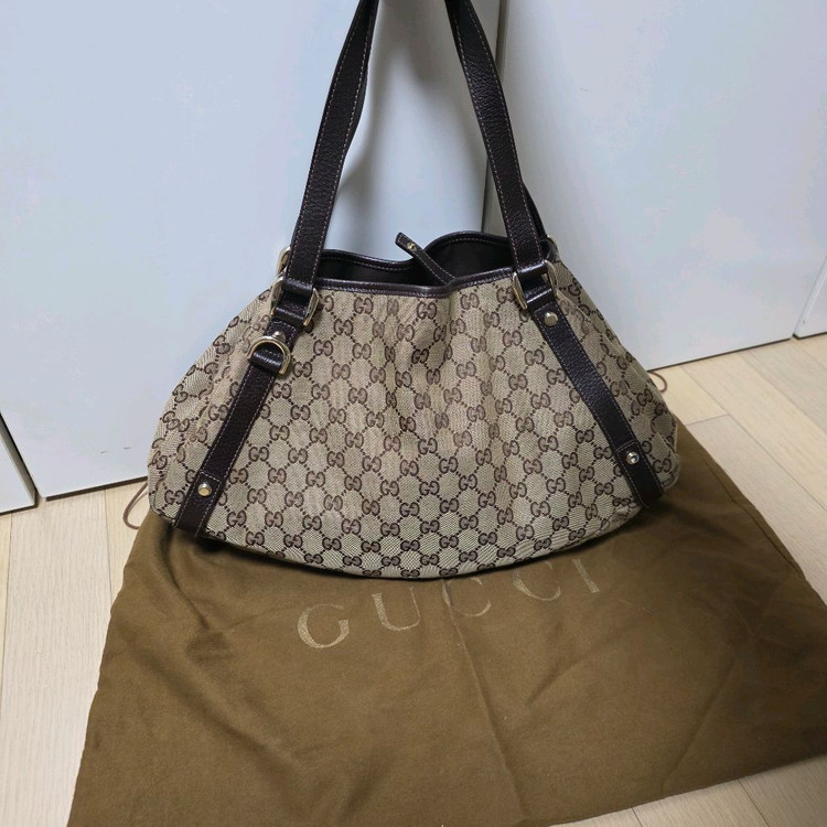 롯데 구찌에서 구입한 정품이구요 사용감 살짝 있고 상태 좋아요 사진 보시는것처럼 깔끔하니 잘 쓰시길 바랍니다~ 가볍고 활용도 정말 좋은 가방이에요 사이즈 40×21 정도