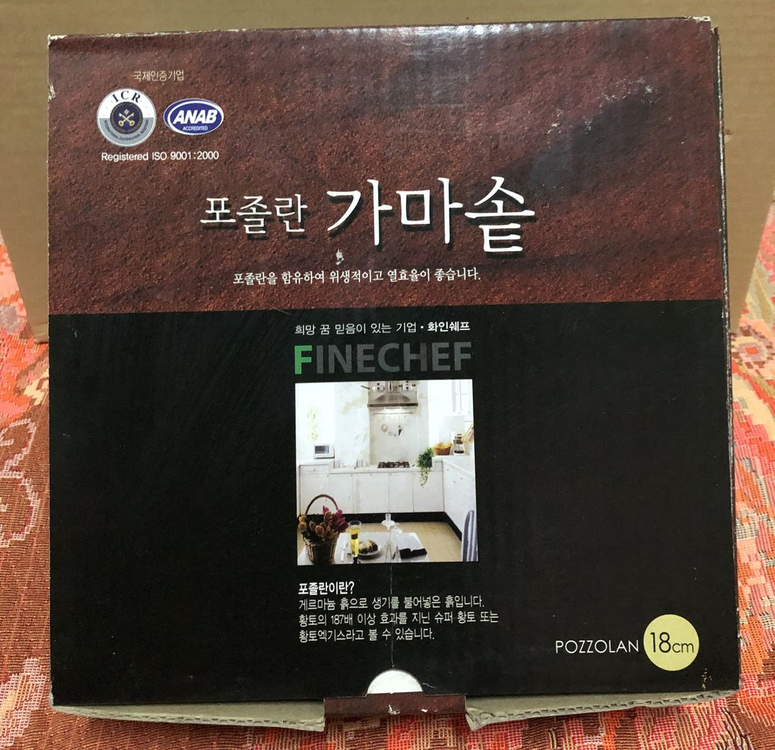*화인쉐프, 포졸란 가마솥 미사용 새제품, 18cm, 중불이하로 조리 가능하여 열효율이 좋음, 원적외선, 포졸란을 함유하여 유약처리하여 위생적,