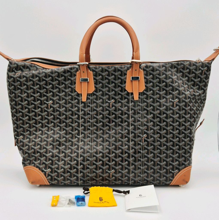 [중고명품셀렉트]고야드 보잉 볼링 45 보스턴백 고야드의 시그니처 쉐브론 패턴이 돋보이는 보잉 45 보스턴백입니다. 가볍고 내구성이 뛰어난 고야딘 캔버스 소재로 제작되어 여행용은 물론 데일리로도 활용도가 매우 높은 모델입니다. 45 사이즈는 1~2박 여행에 적합한 실용적인 크기로 캐리어 없이 이동할 때 가장 선호도가 높은 사이즈이며, 더블 지퍼 구조로 수납이 편리하고 안정적인 사용이 가능합니다. 유행을 타지 않는 클래식한 디자인으로 남녀 모두 사용 가능한 고야드 대표 보스턴 라인입니다. ■브랜드: 고야드 ■제조국: 프랑스 ■사이즈: 45 * 32 * 21 cm ■구성품: 자물쇠, 열쇠, 북렛, 리본끈, 한국명품감정원감정서 ■상품등급: A 전체적으로 양호한 컨디션 코너: 까짐 및 미세 이염 있음 내부: 양호