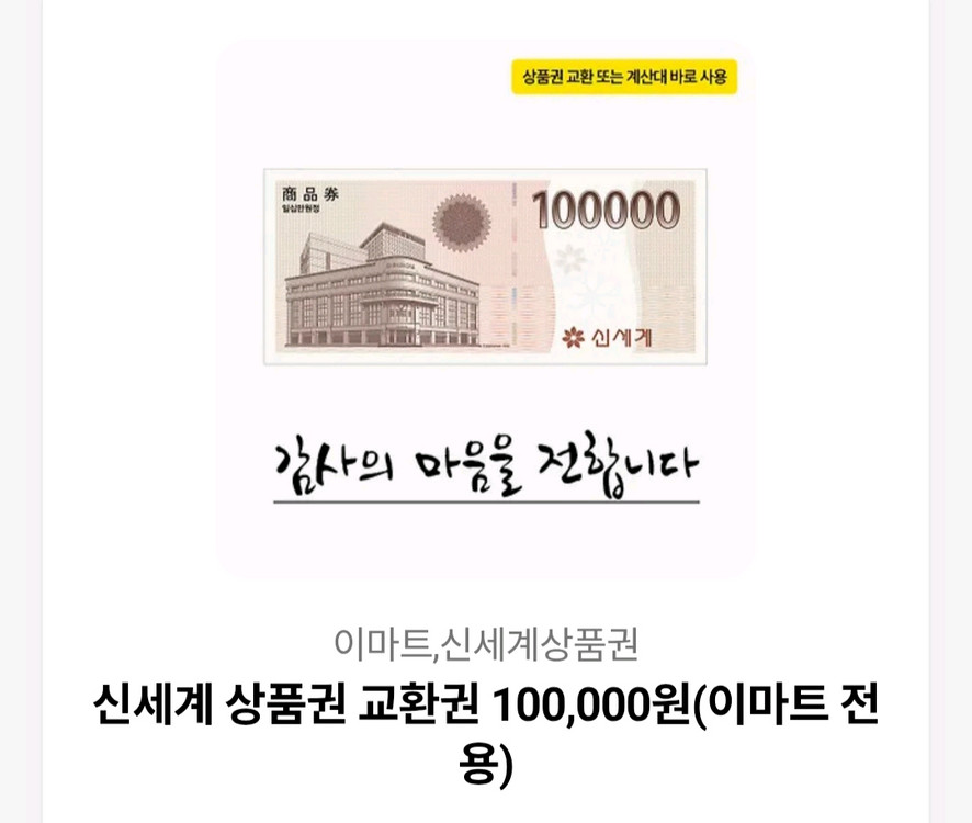 신세계(모바일) 상품권 팝니다 10만원권 입니다