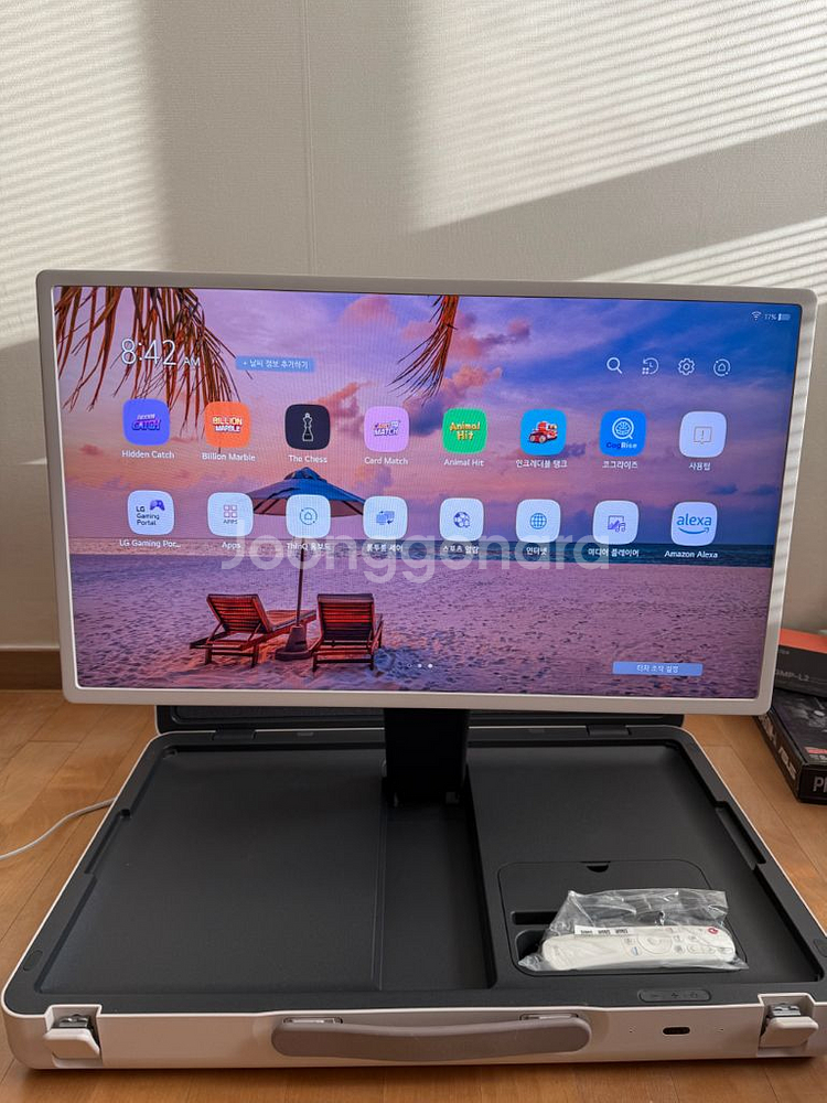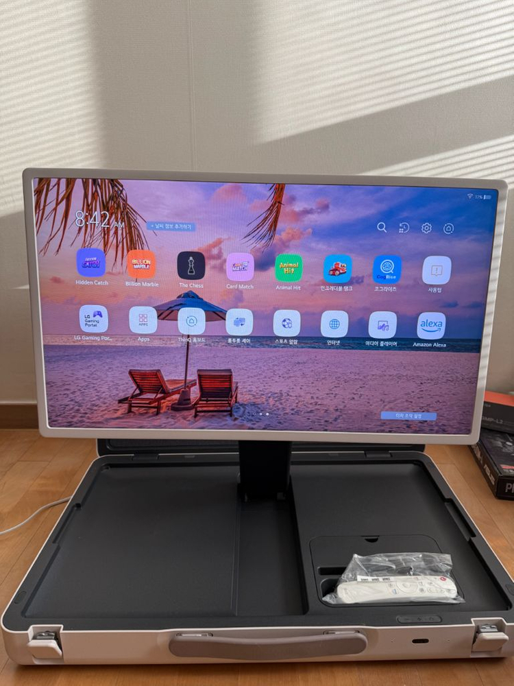 LG 스탠바이미 Go 27인치 휴대용 스크린입니다 - 넷플릭스, 유튜브 시청 가능 - 야외에서도 사용 가능 - 모델명: 27LX5QKNA 밖에서 사용한적 없고 사용시간 1시간 입니다. 박스는 없습니다. 교환 환불 X