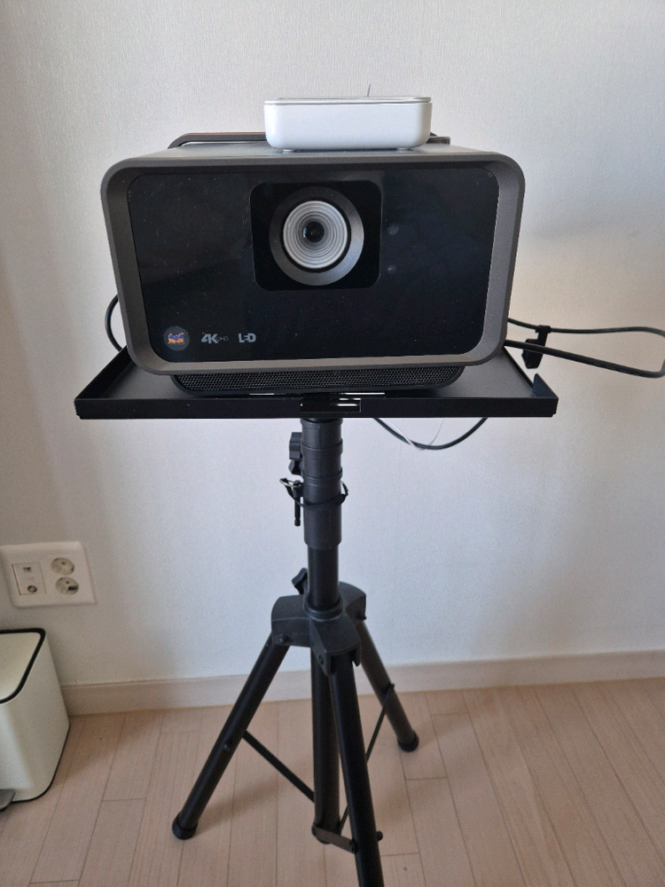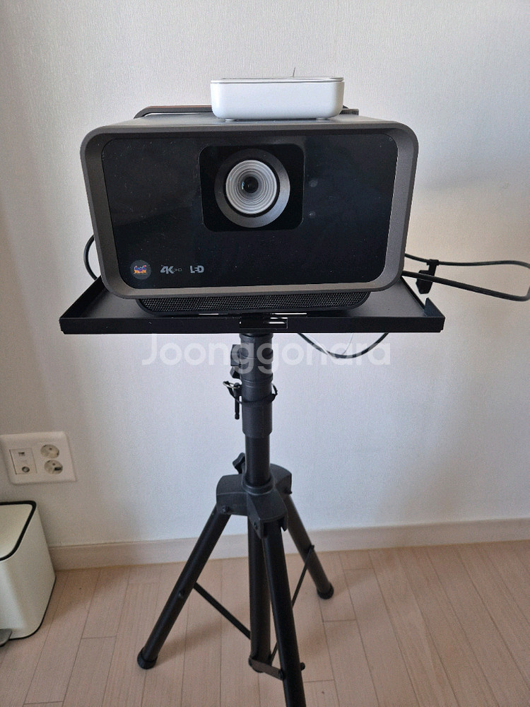 뷰소닉 X10-4K 빔프로젝터 판매합니다 4K UHD 해상도를 지원하고 2,500 LED 루멘의 밝기로 낮에도 선명하게 시청 가능하며, 듀얼 하만카돈 스피커가 내장되어 있어 별도의 스피커 없이도 풍부한 사운드를 제공합니다 스마트 기능이 탑재되어 있어 다양한 콘텐츠를 편리하게 이용할 수 있습니다 사진과 같이 삼각대 포함이며, 전체적으로 깨끗하고 상태 양호합니다 2천시간 이하 사용했고, 램프 수명이 3만시간 이상이라 평생 사용가능합니다. 리모콘 포함입니다.
