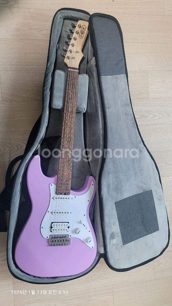 입문용 일렉기타 팝니다 헥스 E100s/pu 라벤더 색상 일렉 기타와 Am Besten 앰프, 기타 스탠드, 기타 케이스까지 포함된 풀세트입니다 구매하고 2~3번 정도 밖에 사용안한 거의 신품급 상태를 유지하고 있어요. Am Besten 앰프는 기타와 함께 초보자분들이 시작하기 좋은 구성입니다 홈플러스 센텀시티점까지 가지러 오셔야 합니다 반품x 환불x