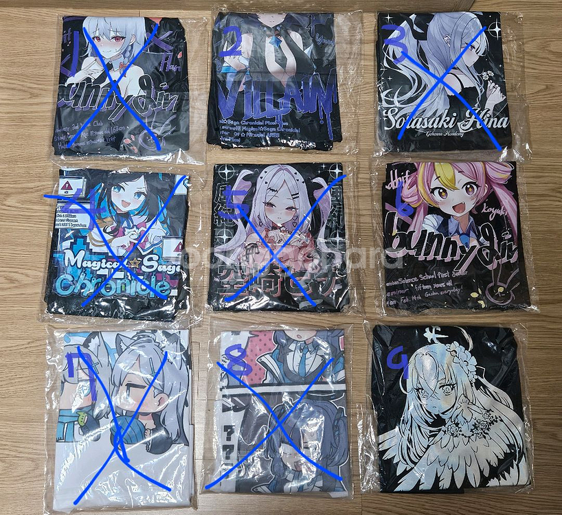 블루아카이브 티셔츠 정리 겸 대량 판매 합니다 한번도 안뜯은 미개봉 상품입니다. 1번 팔렸습니다. 2번 4 L 사이즈 (유우카) 3번 팔렸습니다. 4번 팔렸습니다. 5번 팔렸습니다. 6번 4 L 사이즈 7번 팔렸습니다. 8번 팔렸습니다. 9번 4 L 사이즈 이제 품절 상태이며 재고 없는 희귀한 상품입니다. 배송비 📦 GS 국내택배 : + 4,500원 📦 GS 반값 + 2,500원 구입 희망하시는 분은 "구매 문의 채팅" 주세요.