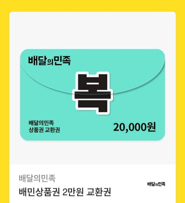 배민 배달의 민족 상품권 2만원권 팝니다(18,000원)