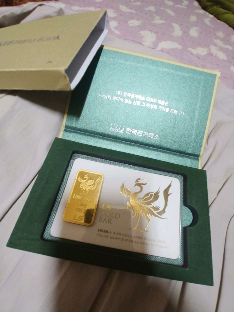 100g(26.67돈) : 돈당 954,000원 . . . 판매가 : 2,544만 10g(2.67돈) : 돈당 963,800원 . . . 판매가 : 257만 각 제품마다 일련번호 각인되어 있고 일련번호에 맞는 보증서가 후면에 첨부되어 있습니다. 부산 주례2동 현금 직거래 최우선 합니다.