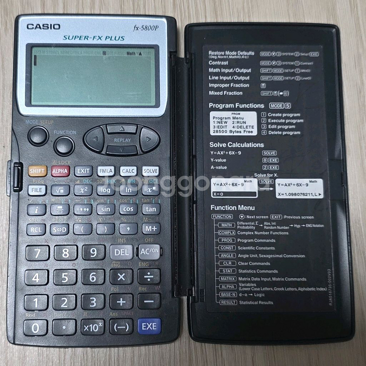 다양한 계산 기능을 제공하며, 프로그램 기능도 지원합니다. 커버가 부러졌고 사용감 많습니다만, 작동에는 문제 없습니다. 설명서도 함께 드립니다.