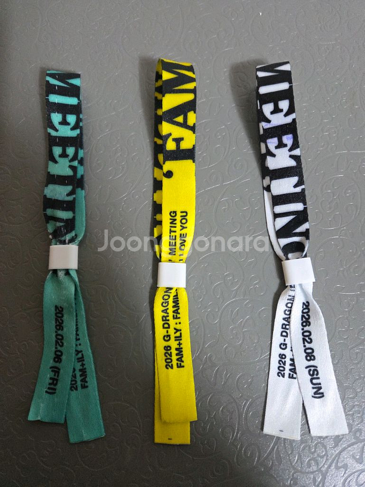 지드래곤 지디 팬미팅 첫콘,중콘,막콘 입장팔찌 팝니다 금액-개당2만원 배송비별도 일반택배-4천원 gs25반값택배-2100원 ✅️팔찌 3개일괄하시는분 중콘 컨페티 1장 같이드려요 ✅️팔찌뺄때 약간 스크래치 생겼는데 예민하신분들은 구매 신중해주세요 구입하실분은 채팅 주시면 바로 답장드리겠습니다