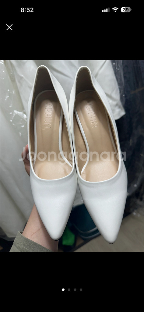 개인정보(거래정보)를 주고받는 행위는 사기에 노출될 수 있으므로 즉시 중고나라로 신고해 주세요사뿐 2025.2월구매 결혼식 피로연때 1시간정도 착용 발꿈치 있는데 선 있는 것빼곤 상태좋아요 사진 참고해주세요