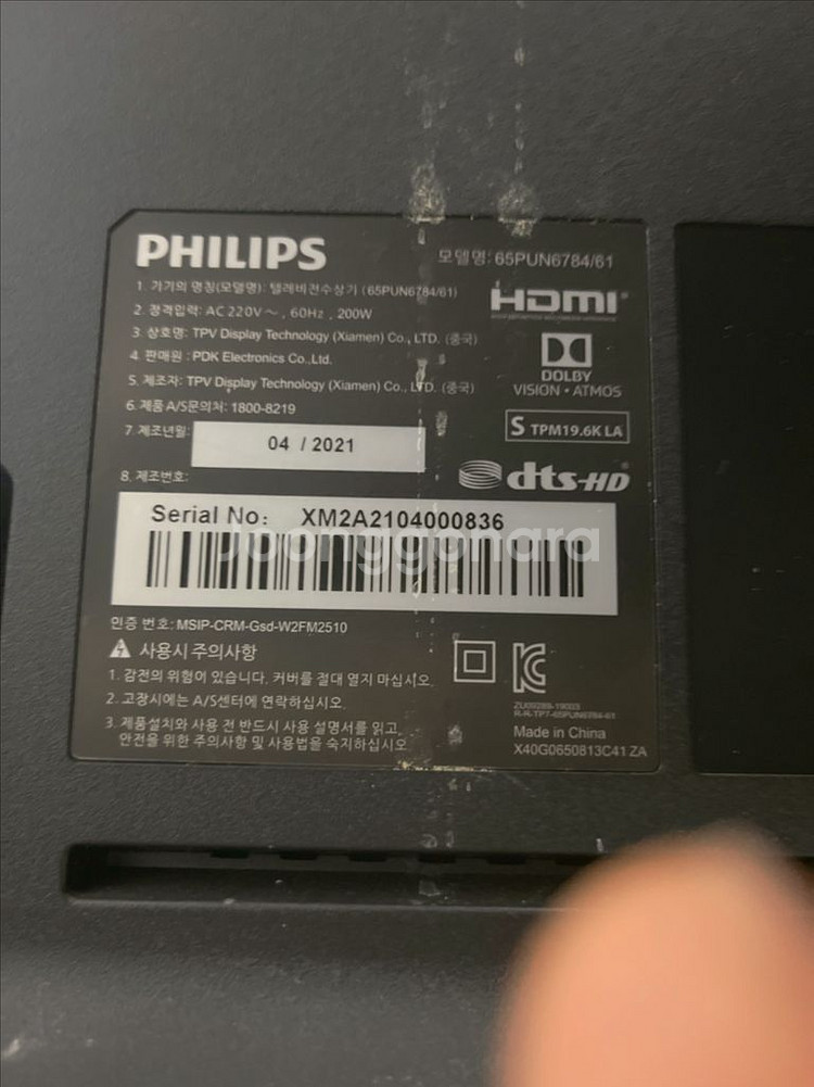 개인정보(거래정보)를 주고받는 행위는 사기에 노출될 수 있으므로 즉시 중고나라로 신고해 주세요필립스 65인치 TV 65PUN6784/61 제조년월 21년 4월입니다 이동 중에 액정이 나갔습니다 수진역 근처 직거래