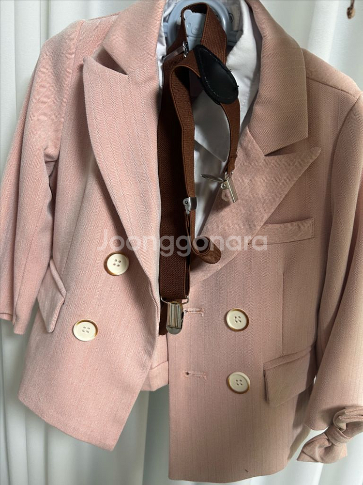 남아용 핑크 정장과 화이트 로퍼 세트예요. 셔츠, 멜빵, 타이까지 완벽풀세트에요ㅎㅎㅎ 상태 좋고 깔끔한 디자인이 예뻐요. 특별한 날 입히기 좋을 것 같아요! 우리아기 입었던것 첨부합니다^^
