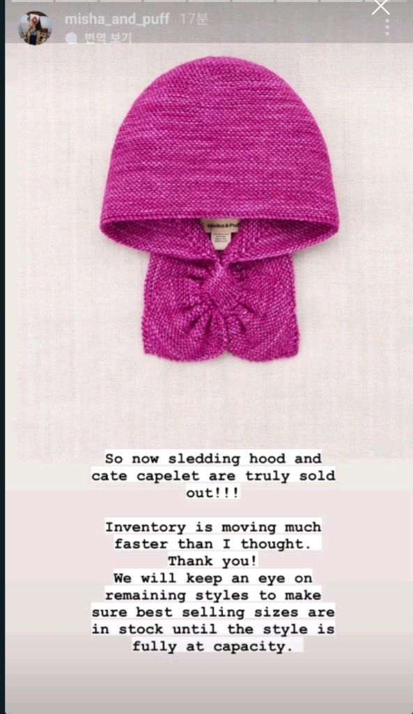 미샤앤퍼프의 사랑스러운 Sledding Hood입니다 후드와 넥워머가 연결된 디자인으로, 100% 메리노 울 소재로 제작되어 부드럽고 따뜻합니다 색상은 Fuchsia이며, 니트 짜임이 고급스러워요 이거 처음 공홈 솔다웃 제일 빨라서 다시 열어달라고 난리였던 색상입니다 예쁜 아기가 쓴 모습에 안살수 없던 ~~~♡ 시착 만 했어요 📦 일반 택배비 3.500 📮 우체국 택배 4.000 🚚 반값택배 1.800