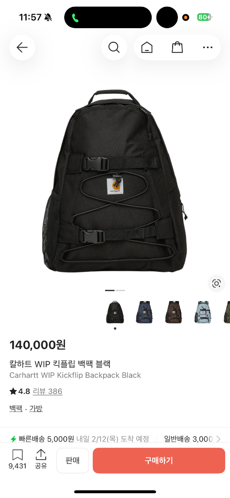 칼하트 WIP 킥플립 백팩 블랙
