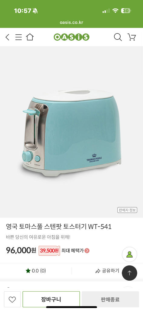 영국 토마스풀 스텐팟 토스터기