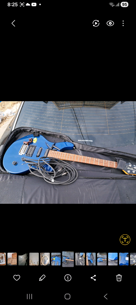 톱브랜드삼익전기기타전자기타블루 컬러의 일렉기타와 케이블 가방이 함께 있는 세트예요. 기타는 사용감이 있지만 연주에는 문제없고, 케이블도 포함되어 있어서 바로 사용 가능합니다.d an wo