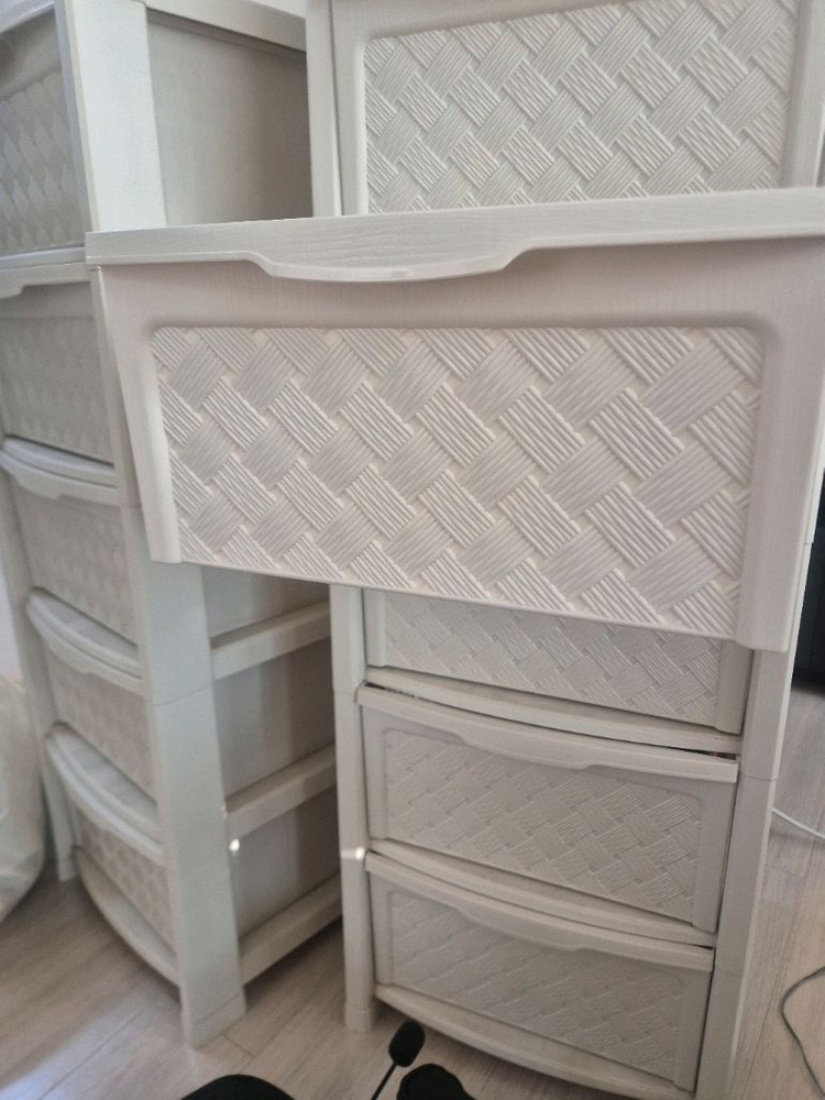 개인정보(거래정보)를 주고받는 행위는 사기에 노출될 수 있으므로 즉시 중고나라로 신고해 주세요똔따렐리 아이보리 5단 플라스틱 서랍장 깔끔한 베이지 컬러의 5단 서랍장이에요. 다이아몬드 패턴 디자인이 고급스럽고 수납공간도 넉넉해서 실용적입니다. 상태 양호하고 깨끗하게 관리했어요. 인천 서구 직거래만 가능 1개 2만 2개 모두 구매 시 3만에 드립니다. 01059554569