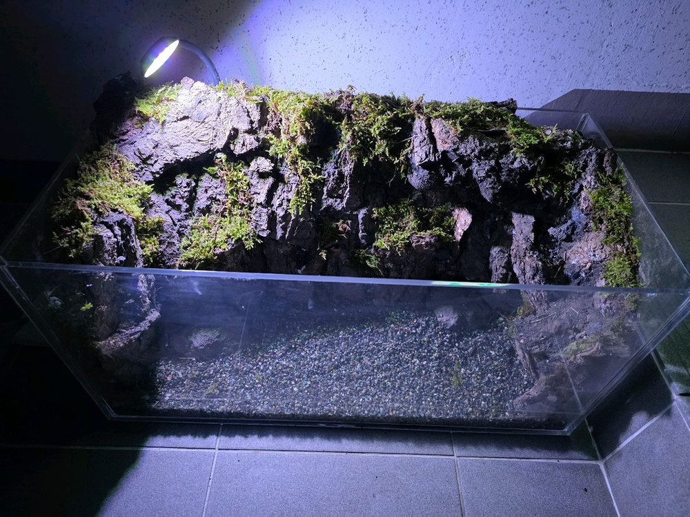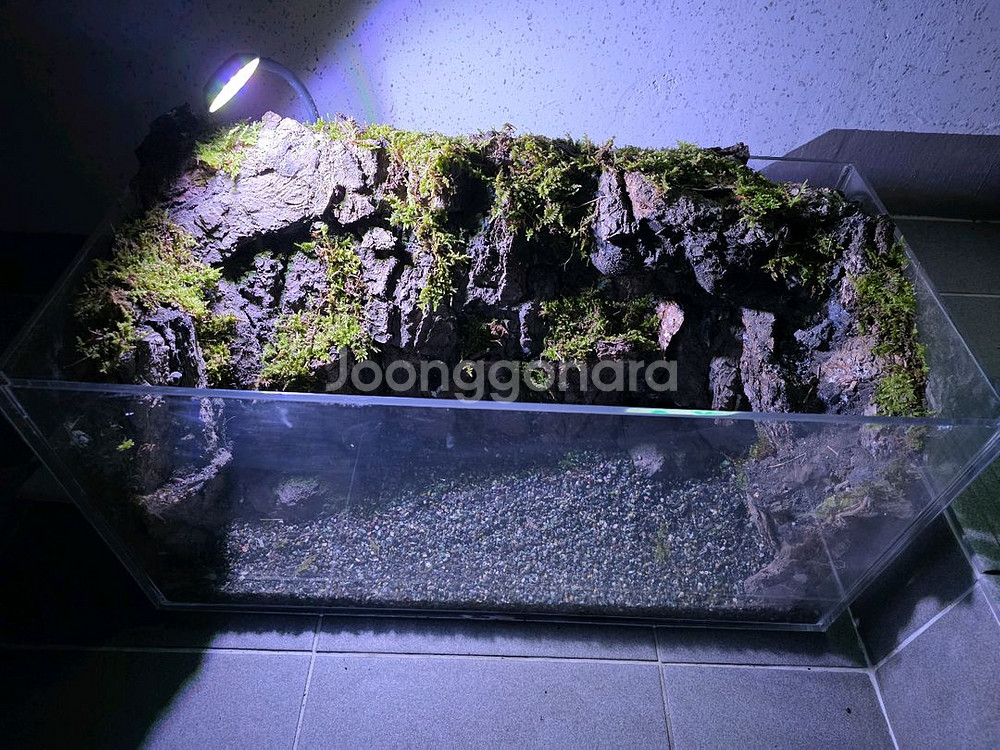 이끼와 돌로 예쁘게 꾸며진 팔루다리움 어항입니다 인테리어 효과도 있고 습도 유지에도 좋아요 2자 어항이며, 조명포함 입니다 우측 부분에서 폭포수가 길을 따라 흐리게 제작되었습니다 안산 주변 직거래 및 파손면책 동의하에 고택 가능합니다