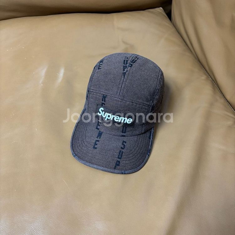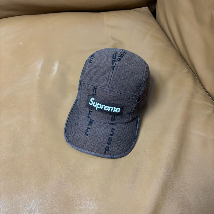 슈프림 캠프캡 모자 박스로고 워시드 데님 브라운