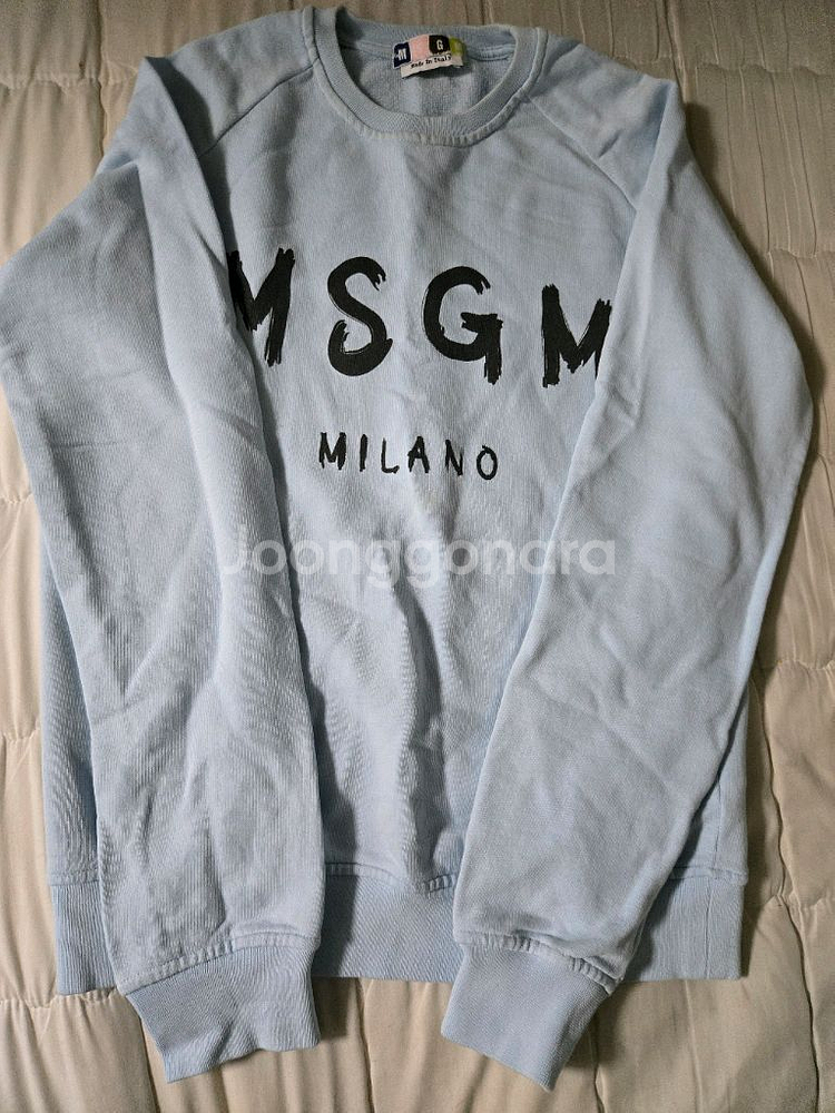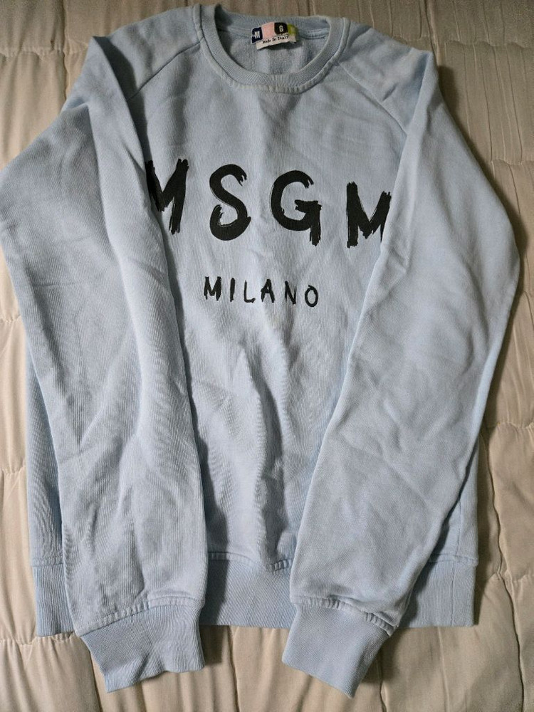 정품 맨투맨으로 S사이즈입니다. 앞면에 브랜드 로고와 MILANO 프린팅이 있고, 전체적으로 깔끔한 상태예요. 이탈리아 메이드 제품으로 품질 좋습니다.