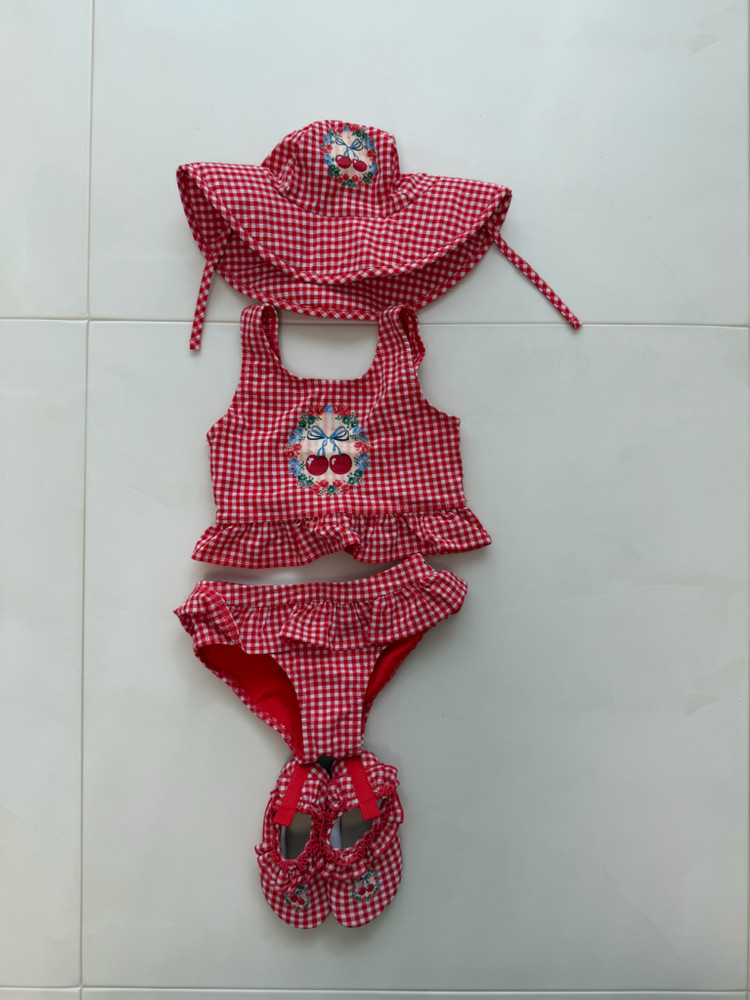 작년 여름에 베이비샵에서 직접 구매했어요:) 여행 때 2회 착용해서 상태 최상이지만 택이 모두 안쪽에 있는터라 아이가 불편해 하길래 모두 제거해서 저렴히 판매합니다😊 모자 2-4y 수영복 3y 슈즈 24-25 좀 크게 나오는 곳이라 저희 아이 4살 때 입혔어요! 지금 키 100에도 맞을거 같긴 한데 수영복 많은 아이라 일단 판매해봅니다〰️ 아이마다 체형이 다르기에 자세한 추천은 어렵습니다 !