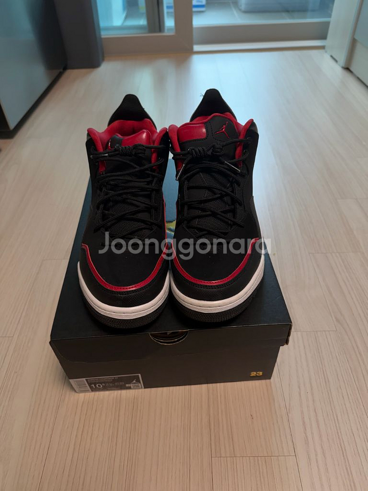 조던 코트사이드 23 농구화 블랙/레드 색상입니다 US 10.5 사이즈, 285mm입니다 박스 포함이고요, 농구에 최적화된 지지력과 쿠셔닝을 제공합니다 접지력이 좋아서 코트에서 안정적인 움직임을 할 수 있습니다 가죽과 스웨이드 재질입니다. 홍대 나이키 매장에서 구매했고 다른 신발이 많아 실착은 2회 거의 새제품입니다. 상태 정말 좋습니다.