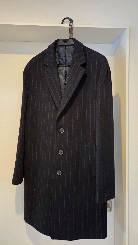 지이크 파렌하이트 네이비 스트라이프 코트 실측 사이즈(105) 총장 102cm / 어깨 51cm /가슴 59cm /팔 63cm 모 67% / 캐시미어 6% 런드리고 드라이 후 보관 중 소매 양끝단, 목 뒤 등 헤짐 없고 전체적으로 올뭉침 없습니다. 네이비 컬러에 은은한 스트라이프가 포인트로 있어 어느 바지에나 어울립니다. 서울 7호선 남성역 인근 사당자이아파트 직거래 또는 착불 택배 가능해요.