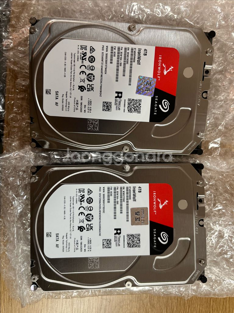 씨게이트 IronWolf 4TB HDD 2개 판매합니다 NAS용으로 사용하기 좋고 안정적인 데이터 저장에 탁월합니다 - 빠른 속도로 작업 효율을 높여줍니다 - 24시간, 365일 항상 켜져 있는 환경에 적합합니다 상태는 사진과 같습니다 -2024년 2월구입 -데이터센터에서 6개월 사용후 -반출하여 보관중입니다 -상태매우 좋습니다 -택배거래 가능합니다 2개 일괄 30만원