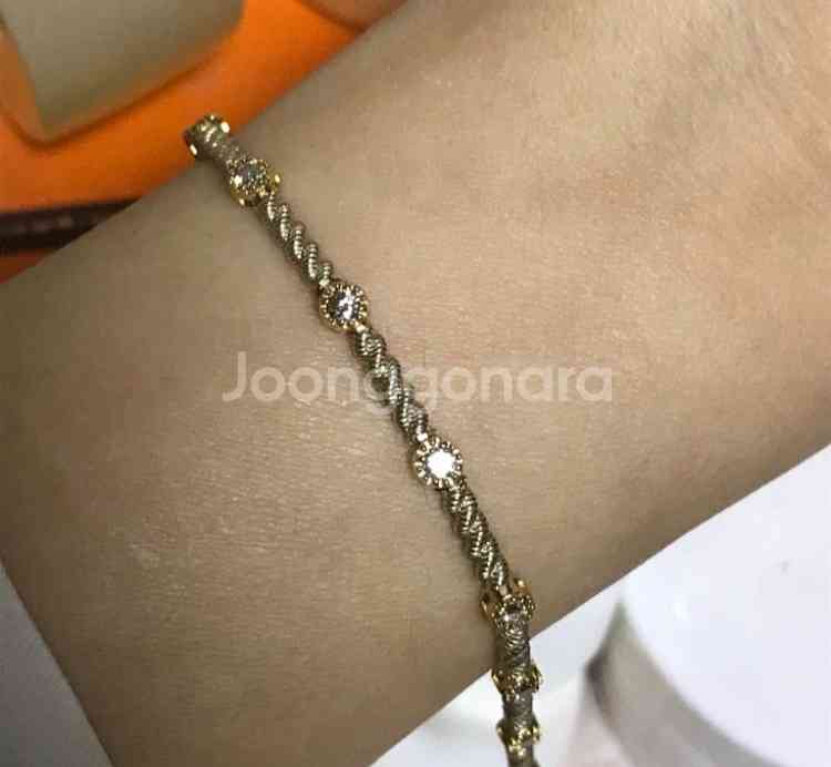*며칠만 가격 내려요 24년 구매 / 관상용으로 둬서 새상품 / 중량은 6.40g 18k 샴페인골드는 14k 샴페인보더 골드빛이 더 돌아 정말 예뻐요. 꼬냑도 반짝임 너무 좋아요. 천연 꼬냑다이아 감정서 유 꼬냑 쪽 엘로우/ 체인쪽은 샴패인 골드 단골집이라 꼬냑도 ow 최상급에 색깔 다 맞춰서 했어요. 1부정도 다이아되는것 같네요. 진짜 예쁜데 사이즈가 조금 아쉬워 올려봅니다 . 뱅글보다 작게 했는데 너무 잘 맞아요 .(판매 안되도 제가 써요. 에눌 노노) 15.5센치 금값오르는데 세공비 좀 더 빼서 올려봅니다 추가 할인은 없습니다.