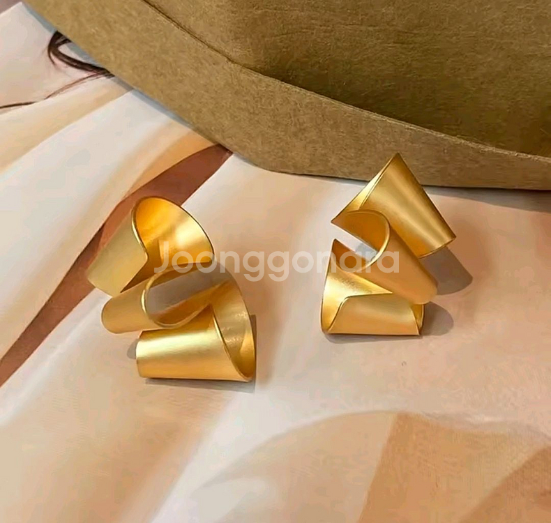 새상품. 무광 골드 컬러 독특한 리본 디자인의 골드컬러 귀걸이입니다 특별한 날 포인트 주기 좋고, 올드머니룩으로 연출하기에도 좋습니다! 독특한거 좋아하시는 분들에게 강추!!! 박스xxxx 알러지 여부는 확인이 어렵습니다. 골드 컬러지 골드 제품이 아닙니다.