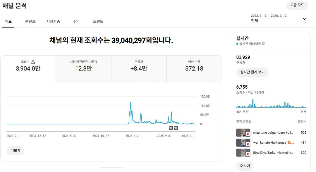 - 주의 및 경고 없음 - 채널 완전히 양도 후 입금 가능 - 해외 시청자층 채널 - 현금영수증 가능 - 수익 창출 불가 - 자세한 채널 정보는 문의 바랍니다.