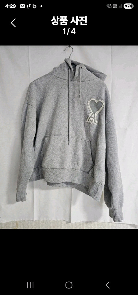 싸이즈 L 아미 파리(Ami Paris)의 빅 하트 로고 후드티입니다. 알렉상드르 마티우시(Alexandre Mattiussi)가 설립한 이 브랜드의 시그니처 '아미 드 쾨르(Ami de Cœur)' 하트 자수 패치가 특징입니다. 제품 정보 브랜드: 아미 파리 (Ami Paris) 특징: 앞면 가슴 부분에 큰 하트 모양의 'Ami de Cœur' 자수 로고가 있으며, 캥거루 포켓과 조절 가능한 드로스트링 후드가 있습니다 면소재로(Cotton) 제작되며, 편안한 착용감을 제공합니다. 색상: 이미지 속 제품은 회색(Heather Grey 또는 Ash Grey)입니다. 스타일: 남녀 공용(Unisex) 스타일로 출시되어 인기가 많습니다.