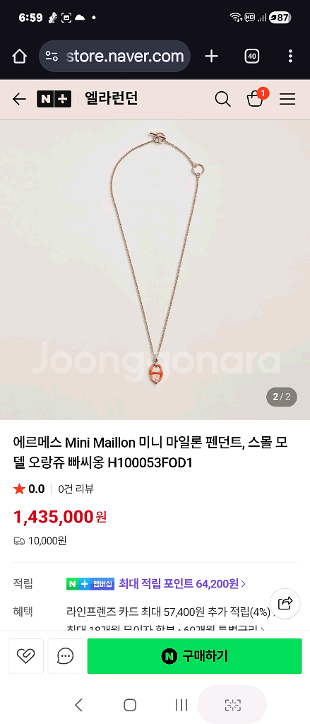 에르메스 미니 마일론 목걸이 팝니다 국내 에르메스 매장 구매 새제품 구매시 그대로 풀구성 가격100만원