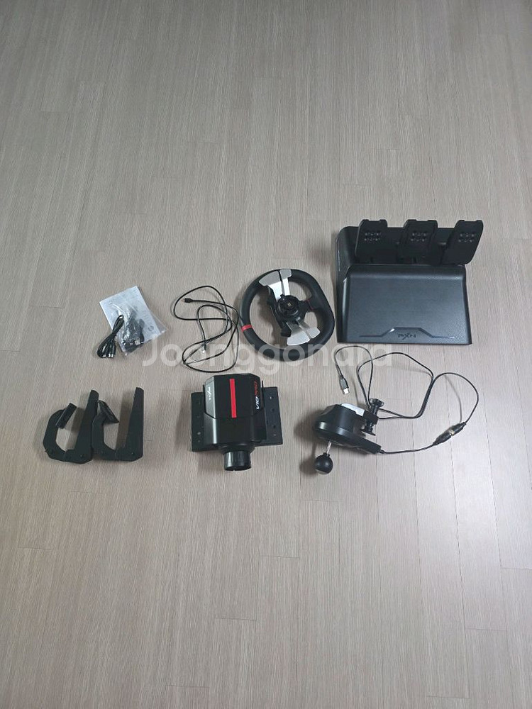 레이싱휠과 각종 액세서리가 포함된 완전한 세트입니다. 사용감은 거의없고 정상 작동하며 레이싱 게임을 즐기기에 좋은 상태예요. 모든 구성품이 다 있어서 바로 사용 가능합니다. 포스피드백 지원하는 기기입니다.