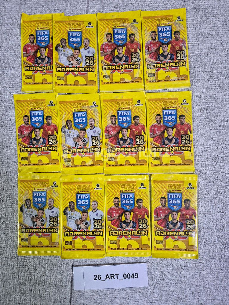 PANINI FIFA 365 2026 ADRENALYN XL 카드팩입니다. ✔ 1팩 6카드 ✔ 총 12팩 (72카드) ✔ 전부 미개봉 정품 택배 . ※ 미개봉 상태 그대로 발송합니다.