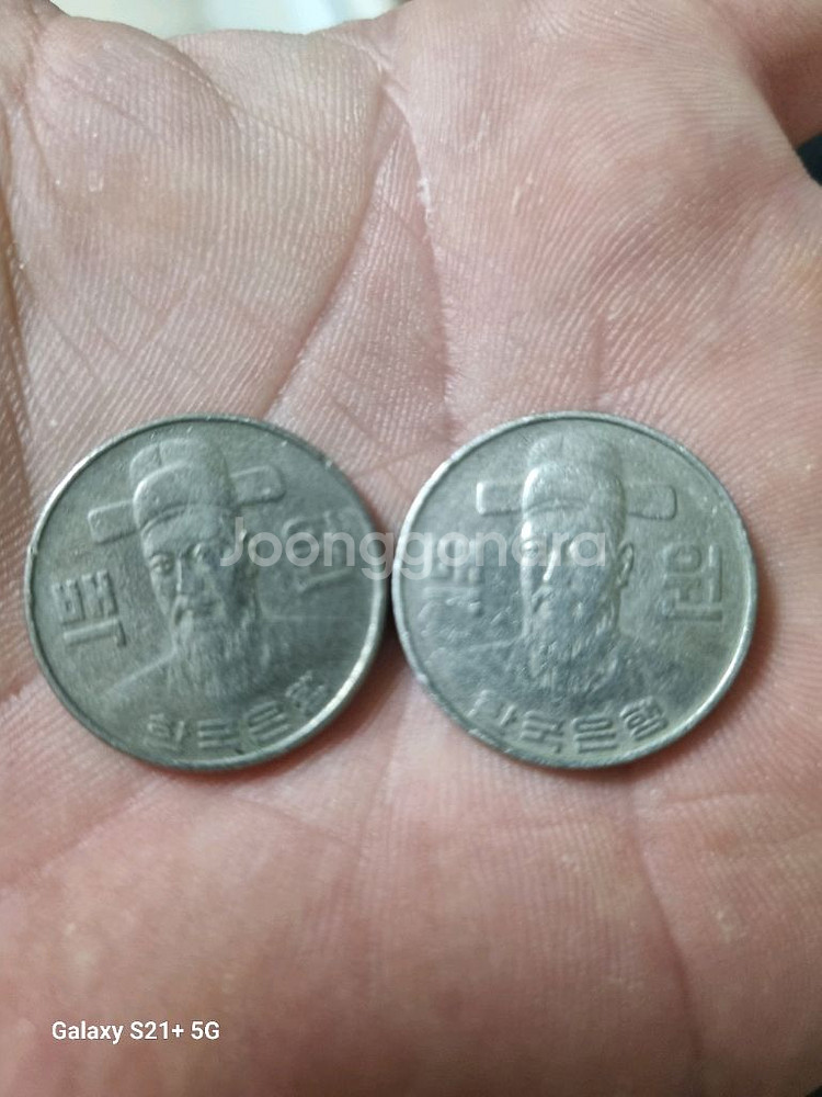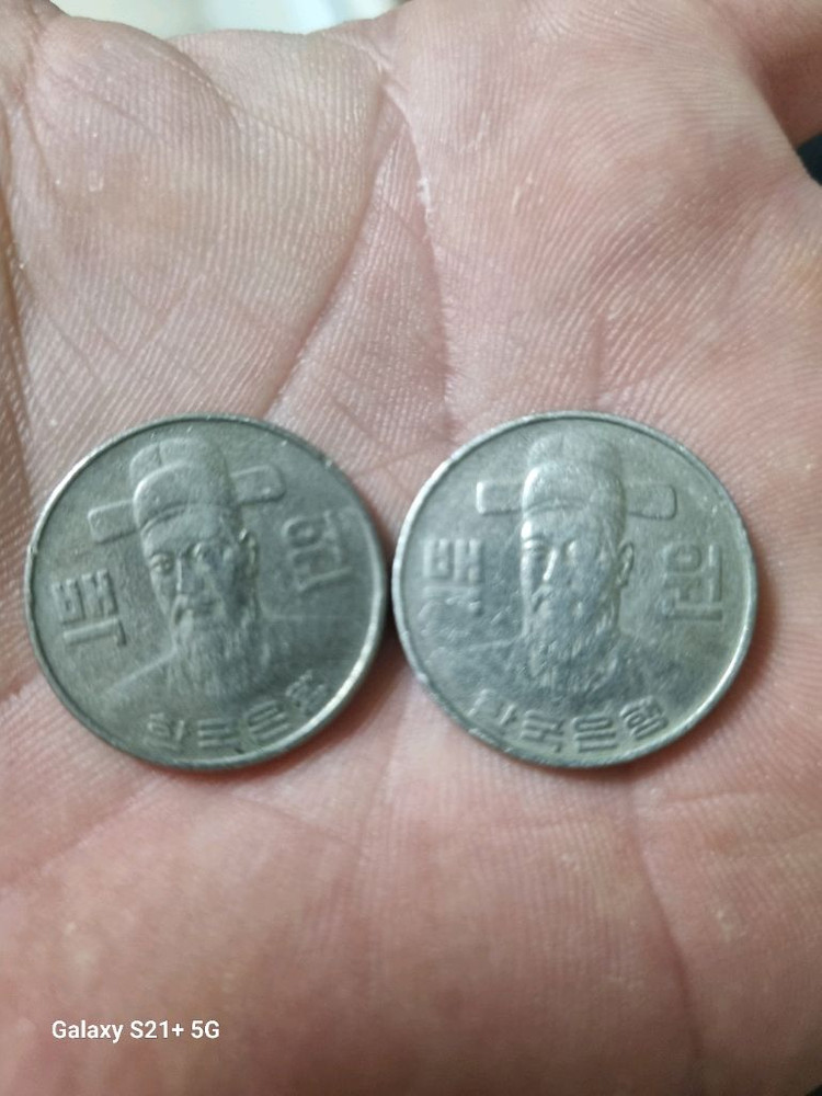 1982년 발행된 100원 동전 2개입니다. 챗주세요