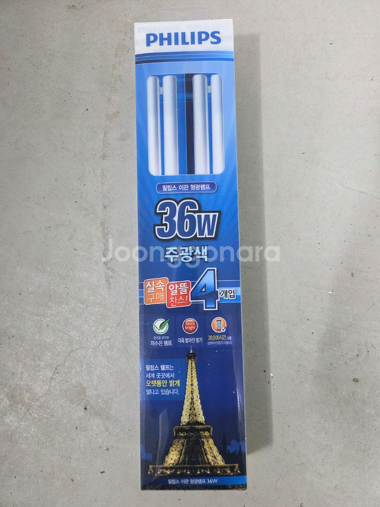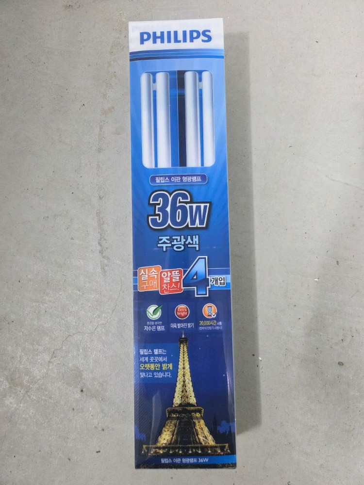 36W 주광색 LED 전구 4개입니다. 미개봉 새제품이고 EAL 인증 제품으로 안전하게 사용 가능해요. 조명용으로 좋은 상태입니다.
