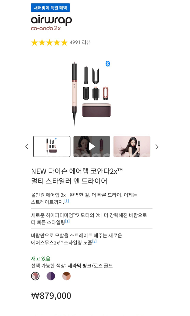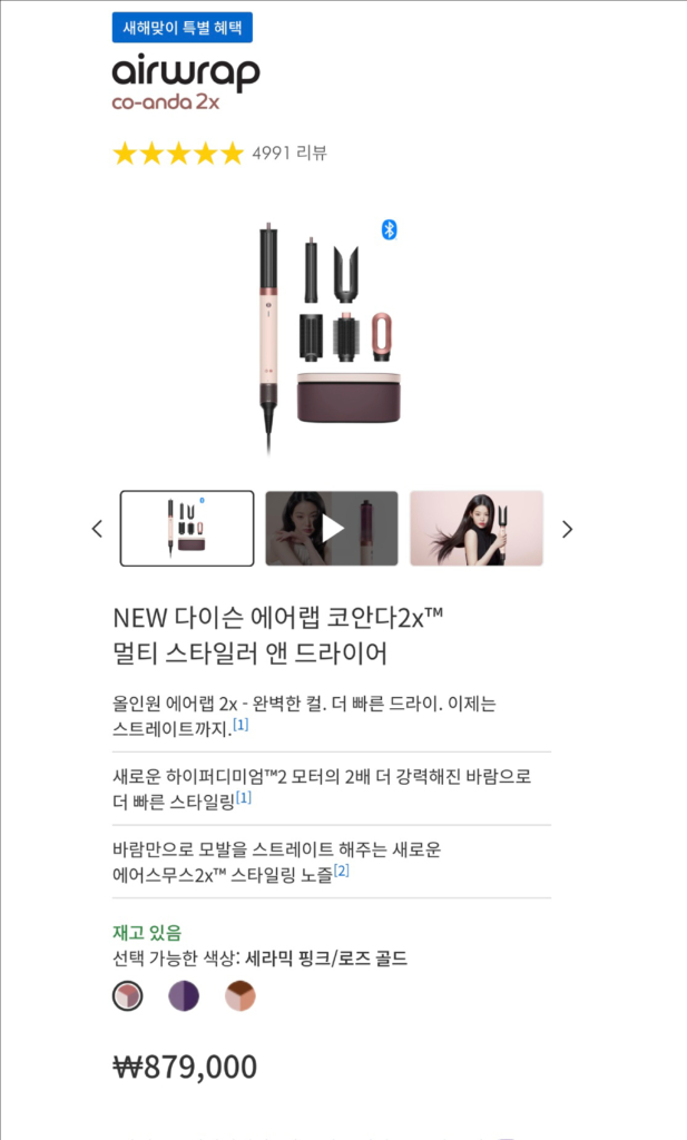 다이슨 에어랩코안다2x 새제품입니다! 세라믹핑크 컬러 입니다 미개봉 새상품 정품등록 가능 무상 AS 2년 가능 합니다 재스퍼플럼 보라 색상도 가능해요!