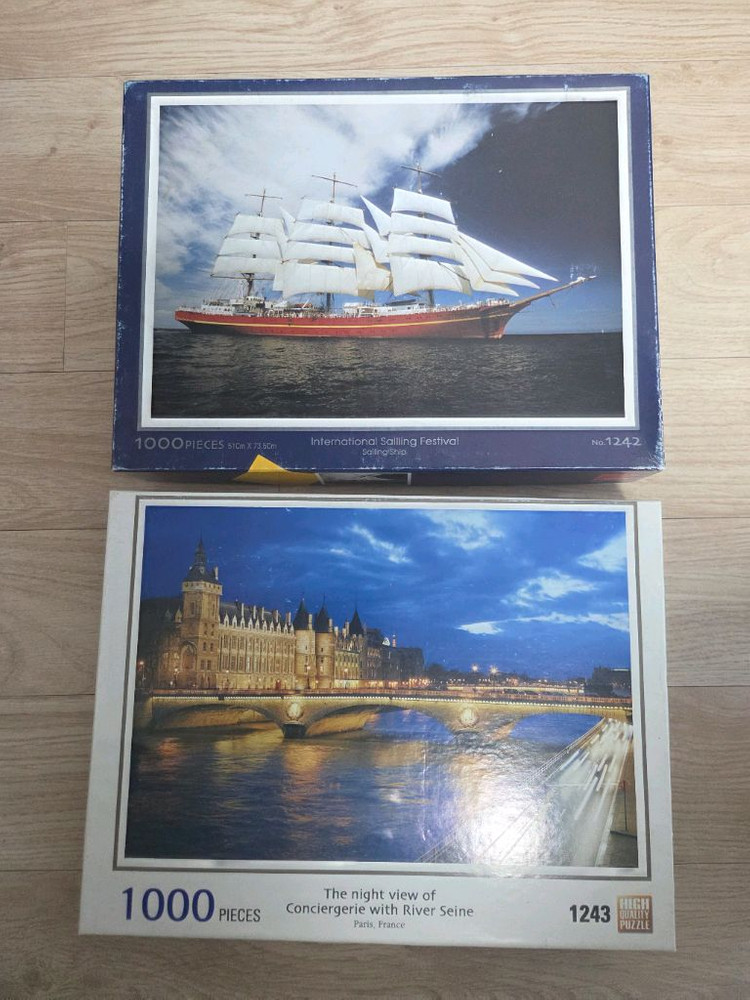 HIZLE 1000피스 퍼즐 2종 세트입니다 - International Sailing Festival - The night view of Conciergerie with River Seine 완성 후 액자 등 인테리어 소품으로 활용하기 좋습니다. 2종 모두 구매하는 가격 입니다.