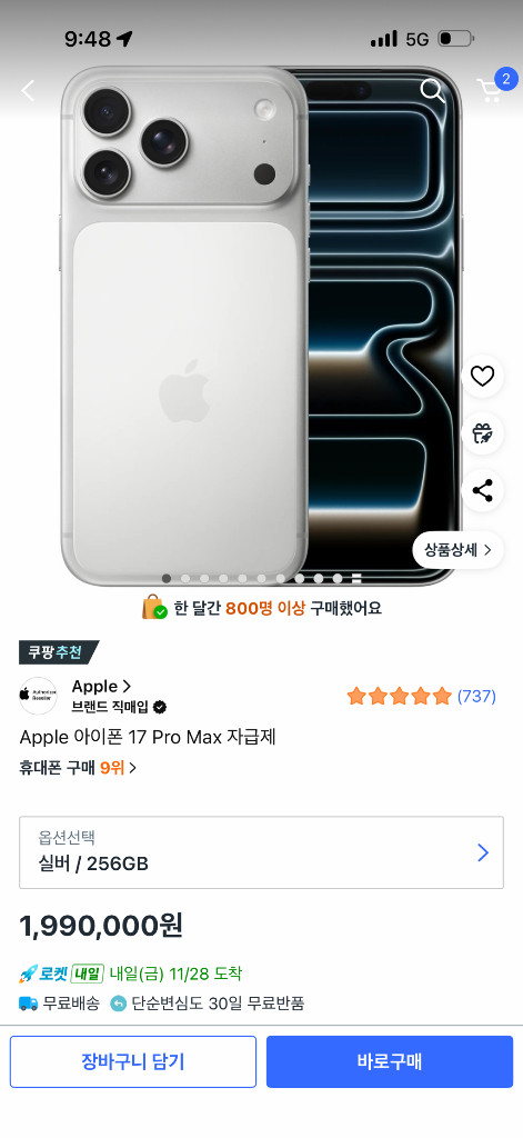 2월19일 발송 아이폰 17 프로맥스 256 자급제