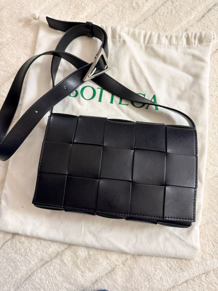 보테가 베네타 레더 카세트백 블랙 패러킷 22fw모델입니다. 착용횟수가 손에꼽을정도로 적고 아끼던 가방이라 상태가 매우 좋습니다. 무광 카프스킨. 보테가버클. 안감패러킷. 조합으로 스크래치에 강한모델입니다.