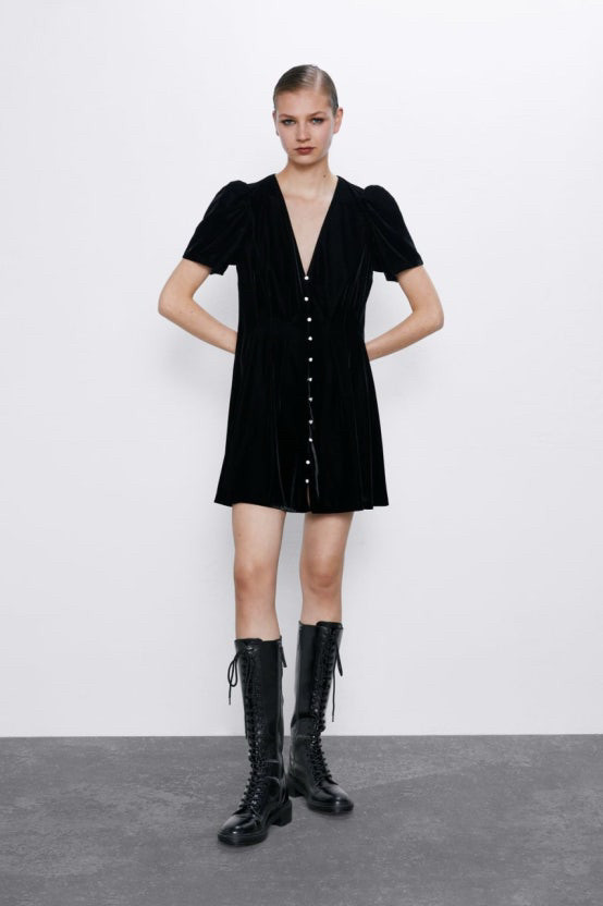 개인정보(거래정보)를 주고받는 행위는 사기에 노출될 수 있으므로 즉시 중고나라로 신고해 주세요자라 벨벳 원피스 블랙 색상 XS /24 사이즈입니다 앞면에 단추 디테일이 있습니다 시착만하고 보관중이에요