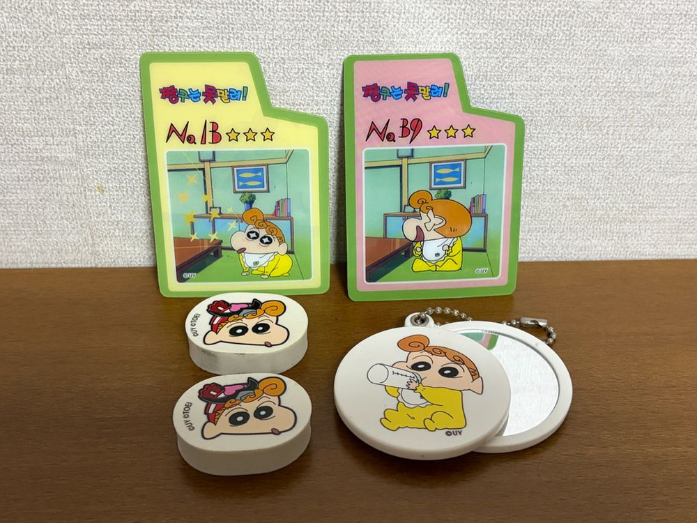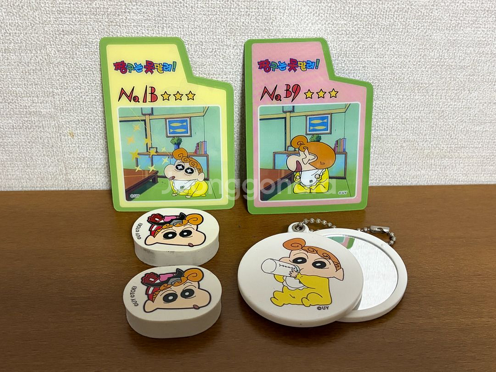 짱구는 못말려 짱아 액션 카드, 지우개, 거울 일괄 - 사용하지 않고 보관 중인 상품들입니다 - 지우개의 경우 보관 도중 둘 중 하나에 오염이 생겼으니 사진 참고 바랍니다(나머지 하나는 상태 좋아요) - 거울도 뒷면 잔기스가 조금 있어 이점 감안하여 저렴하게 내놓습니다 상점 내 다른 짱구 굿즈도 판매 중이니 둘러보고 가세요 :)