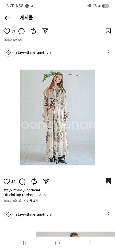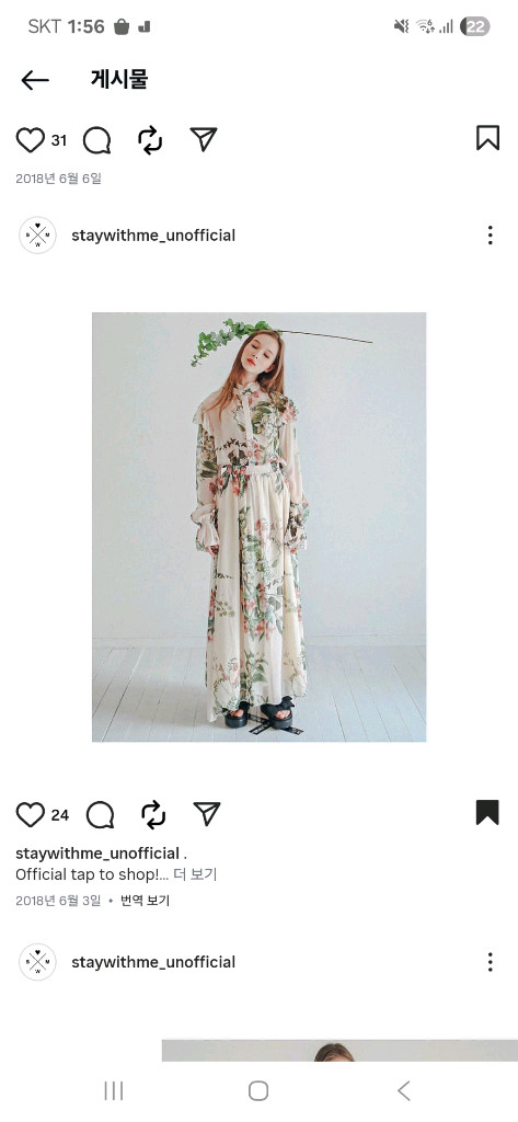스테이위드미 staywithme 플라워 패턴 쉬폰 블라우스와 롱 스커트입니다. 봄날에 데이트룩이나 사진찍을 때도 너무 예뻐요 프리사이즈이고, 치마는 뒷밴딩이있어요 블라우스는 한번입었고 스커트는 새상품이예요! 그래두 예민하신분은 패스해주셔요 제가 미처 발견못한 오염 하자 있을수 있어 감안해서 가격올려요^^ 별도 문의 없으시면 바로 안전결제 부탁드려요! 운양동 여의도 제가있는곳에서 직거래가능해요 택배 3500원, 반값택배 2000원 입니다 개인거래라 환불은 어려우신 점 이해부탁드려요