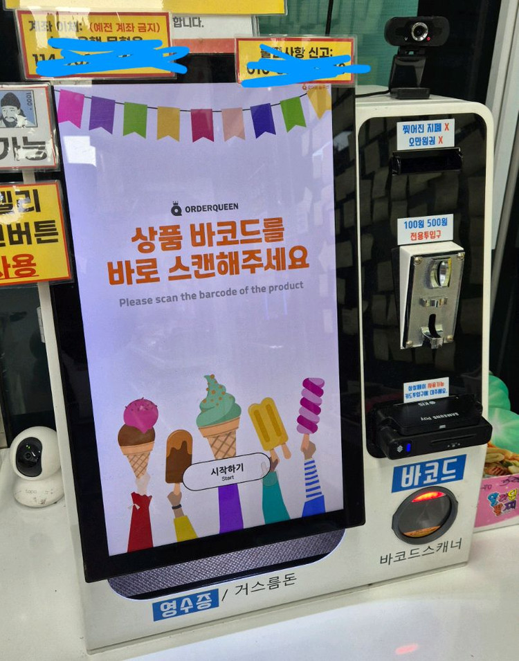 무인 아이스크림. 무인 문구등 무인매장에서 사용하는 키오스크입니다. 업계 1위인 오더퀸 제품이고 현금 완납된 기기입니다. 사용기간은 2년좀 넘은거 같네요 상태는 매우 좋고 현재도 사용증이고 즉시 가져가실 수 있습니다. 무거워서.직거래하셔야할거 같네요 위치는 용인시 기흥구 이마트 흥덕점 근처 010 89770040