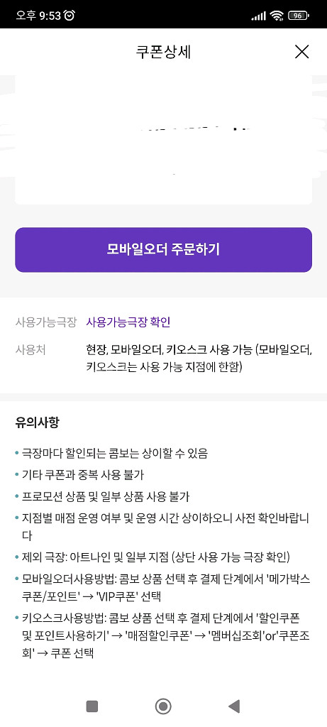 메가박스 매점쿠폰 브아이피 러브콤보 팝콘 탄산 콤보4000 할인쿠폰 다이어리 쿠폰 팝콘 탄산 나초할인쿠폰 브아이피 쿠폰 2/28까지 보유수량 팝콘 3000 ㅡ1개 러브콤보 8500 ㅡ1개 콤보4000 할인쿠폰 1500 ㅡ4개 매점이나 키오스크에서 사용하시면 되세요 등록은 안됩니다 다이어리 쿠폰 (구매전 사용지점 문의요망,앱에 등록후 사용) 팝콘 6/30 까지 3000 탄산 6/30 까지 1500 세트시 4000 나초50%할인쿠폰 12/31까지 900 1장 금액입니다 첨부된 사진에 유의사항 확인 후 챗주세요 본문외 불필요한 질문 사양합니다. 네고 답신 안해요 핀번호 노출후 취소 ,변경 환불 불가하니 신중한 구매 부탁드립니다