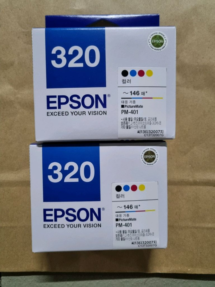 개인정보(거래정보)를 주고받는 행위는 사기에 노출될 수 있으므로 즉시 중고나라로 신고해 주세요정품 잉크 카트리지 2개입니다. 개당가격 엡손 T32007G 4색 T320 일체형 PM-401 잉크 미개봉 새제품 네고문의사절 .