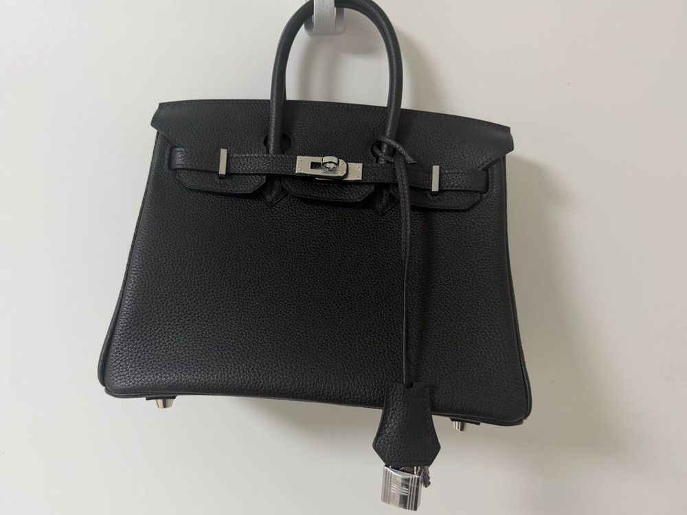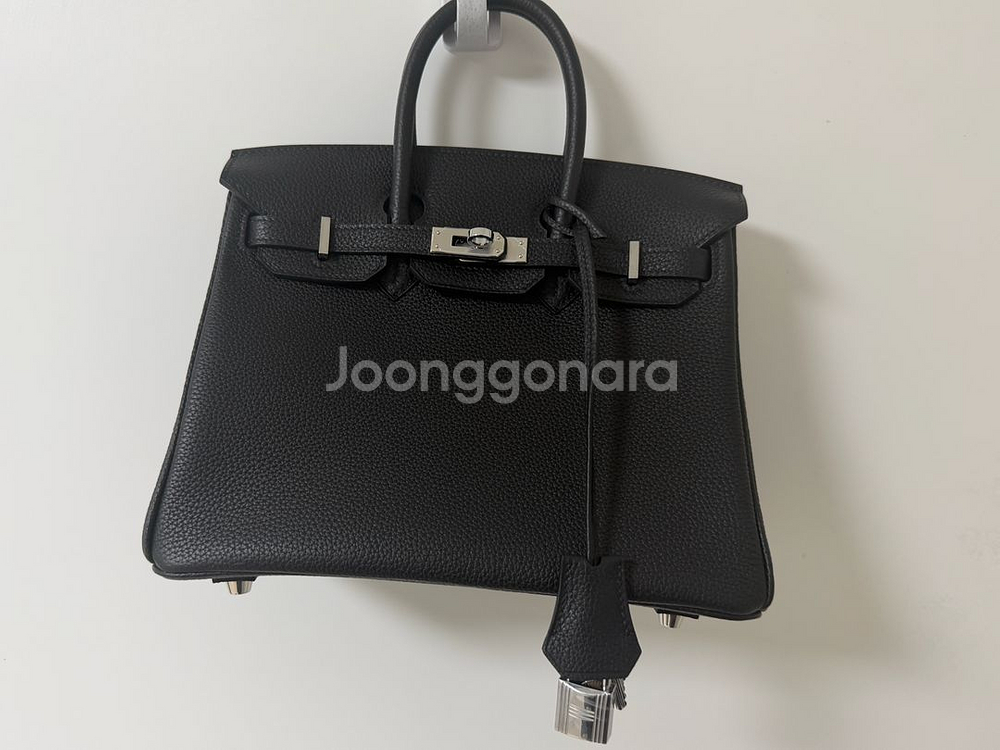 사이즈 : 25사이즈 색상 : 누아블랙 컬러 구성품: 박스,더스트백, 스터드 보호캡(사진 찍을 때만 뺌,마지막사진 참고) 비닐도 안 뗀 새상품 각인 상태 : k각인(2025년도) 수공 제작처에서 주문제작, 동일 가죽 토고 사용 구매가 : 245만원 쿨거래시 네고 가능
